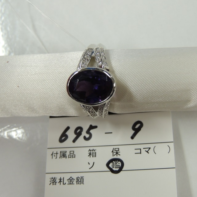 リング アメジスト ダイア Pt900 10.90g 鑑 石目:FD0.31