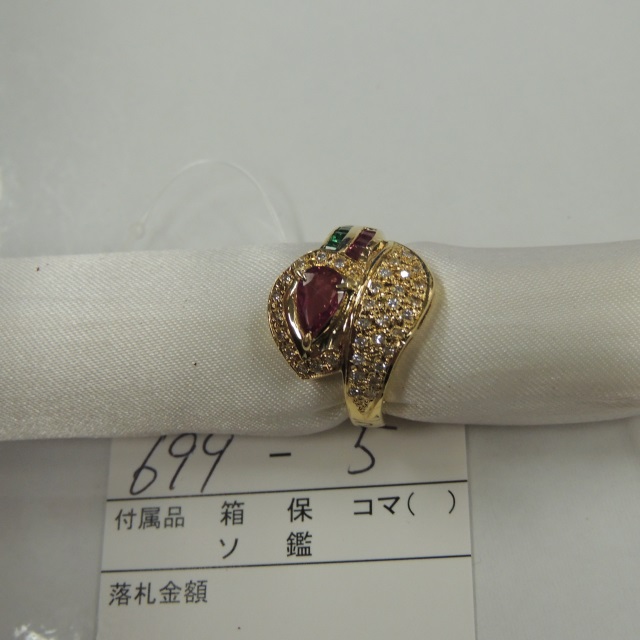 リング マルチ ルビー エメラルド ダイヤ K18 6.50g 石目:R0.50 E0.17 R0.21 FD0.24