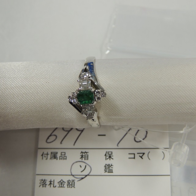 ペントップ 色石 エメラルド ダイヤ Pt900 50.90g 鑑 石目:97.64 D0.38