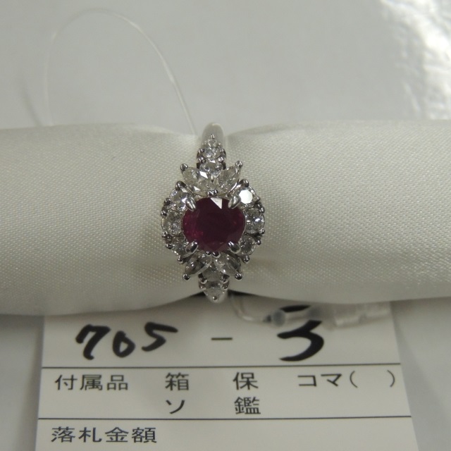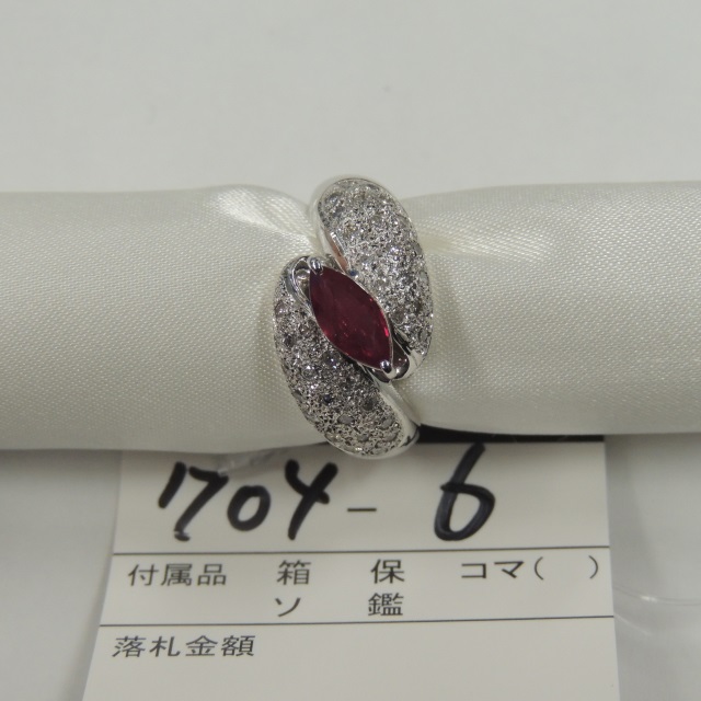 リング ルビー Pt900 14.70g 石目:R1.03 D0.45