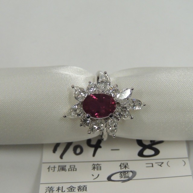 リング ルビー ビルマ産 Pt900 7.40g 鑑 石目:R1.45 D1.95