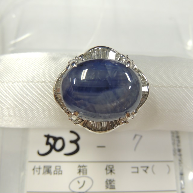 リング スターサファイア ダイヤ Pt900 16.80g GRJソ 石目:15.63 D0.86