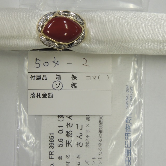 リング サンゴ K18/Pt900 8.40g 中ソ 石目:C5.60 D0.10
