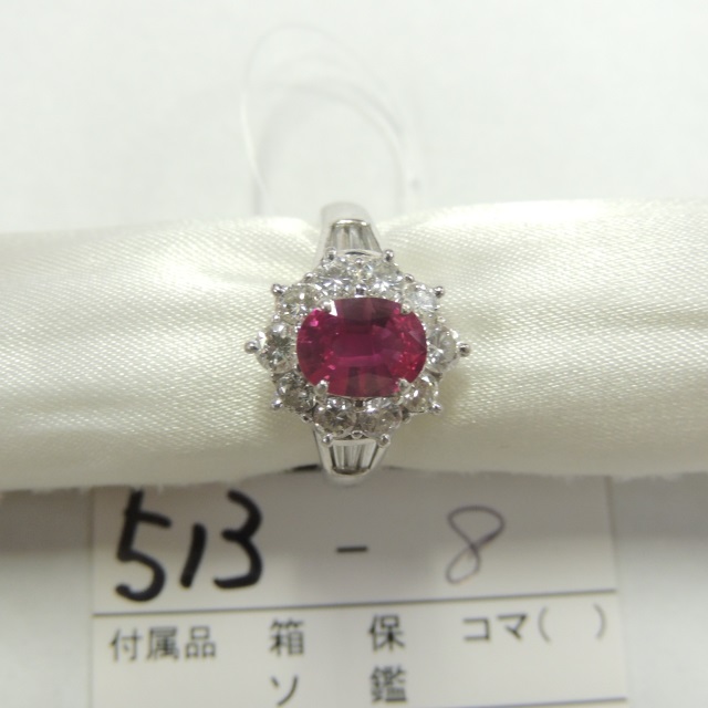 リング ルビー ビルマ ダイヤ Pt900 8.00g 鑑 石目:2.02 0.26