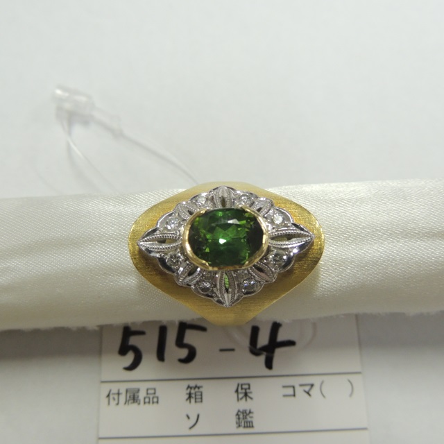 リング グリーントルマリン ダイヤ Pt900/K18 15.10g 石目:GT2.19 FD0.24