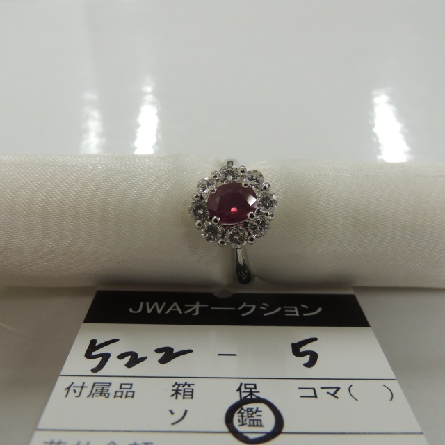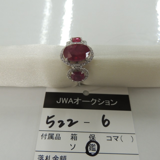 リング ルビー ダイヤ K18WG 5.40g 鑑 石目:3.35 1.18 0.51