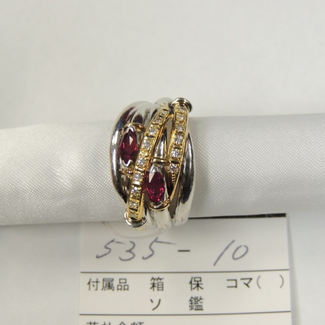 リング ルビー ダイヤ K18/Pt900 6.90g 石目:R0.46 FD0.41
