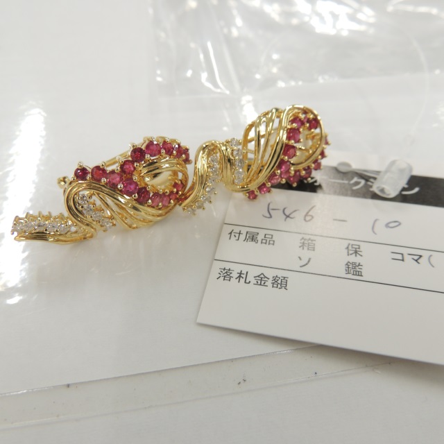 イヤリング ルビー ダイヤ 重量キャッチ抜 K18 12.80g 石目:R2.23 D0.49