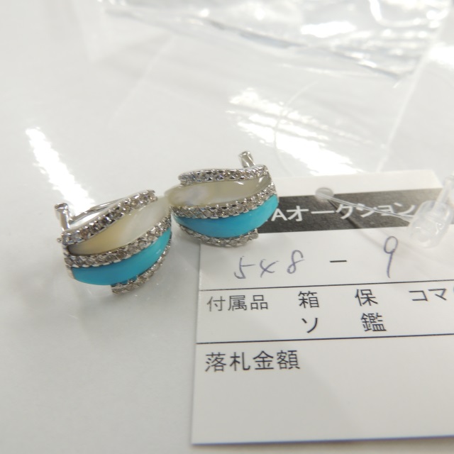 イヤリング トルコ シェル ダイヤ K18WG 7.90g 石目:D0.80