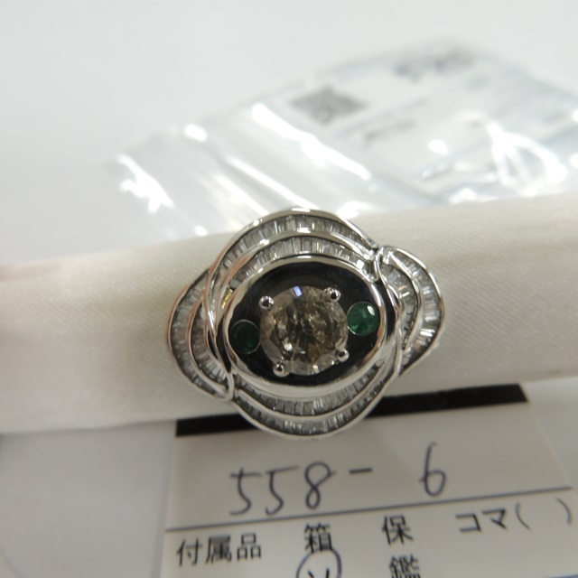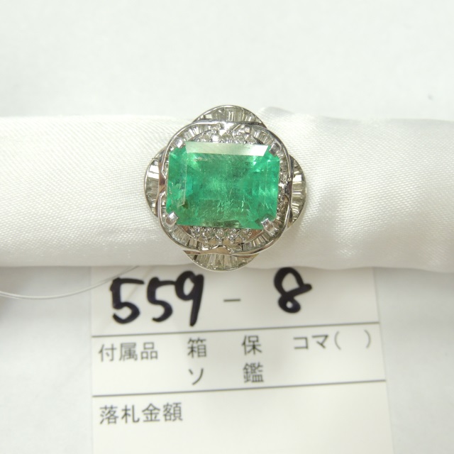リング エメラルド ダイヤ LB/I2/GOOD/FAINT Pt900 18.90g 中ソ 石目:1.119