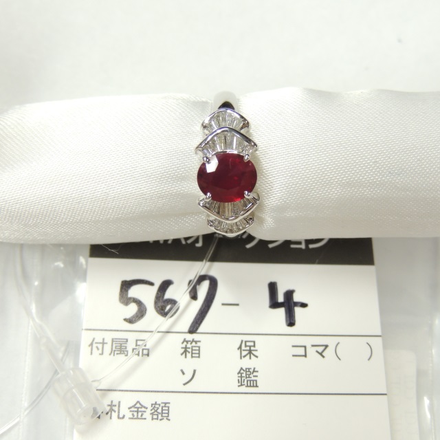 リング ルビー ダイヤ Pt900 5.70g 中ソ 石目:R1.026 FD0.40