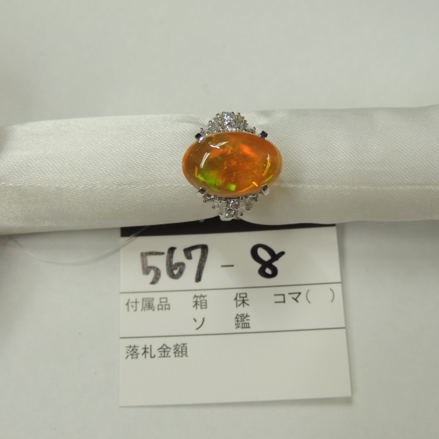 リング メキシコオパール ダイヤ Pt900 7.10g 石目:MO3.97 FD0.53