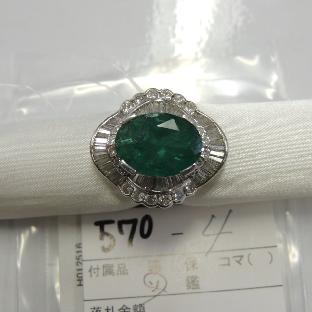 リング エメラルド ダイヤ Pt900 17.00g 中ソ 石目:E7.20 D1.71