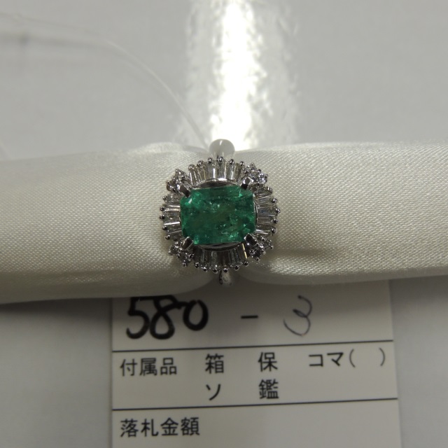 リング エメラルド ダイヤ Pt900 7.10g 石目:E1.80 D0.50