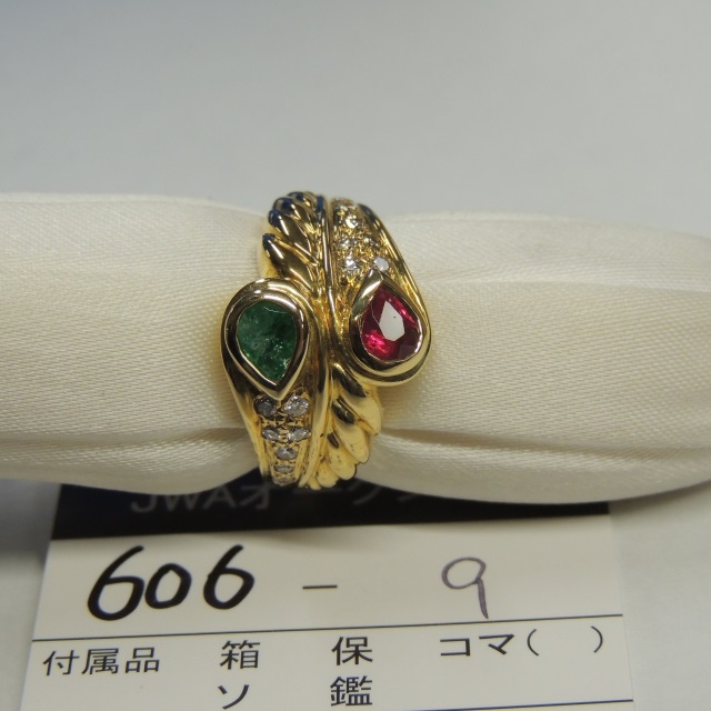 リング ルビー エメラルド ダイヤ K18 7.50g 石目:0.370 0.310 0.210