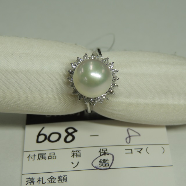 リング パール 9.7mm ダイヤ Pt900 5.60g 鑑 石目:0.390