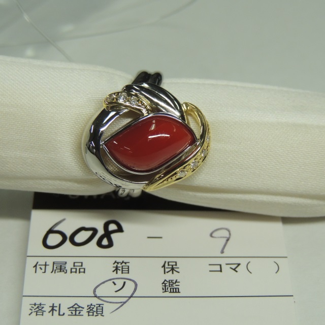 リング サンゴ ダイヤ K18/Pt900 12.10g GRJソ 石目:0.098