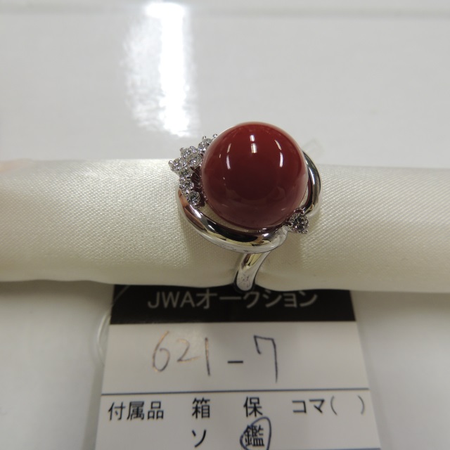 リング サンゴ 13mm ダイヤ 鑑0.23 Pt900 15.00g 鑑 石目:0.20