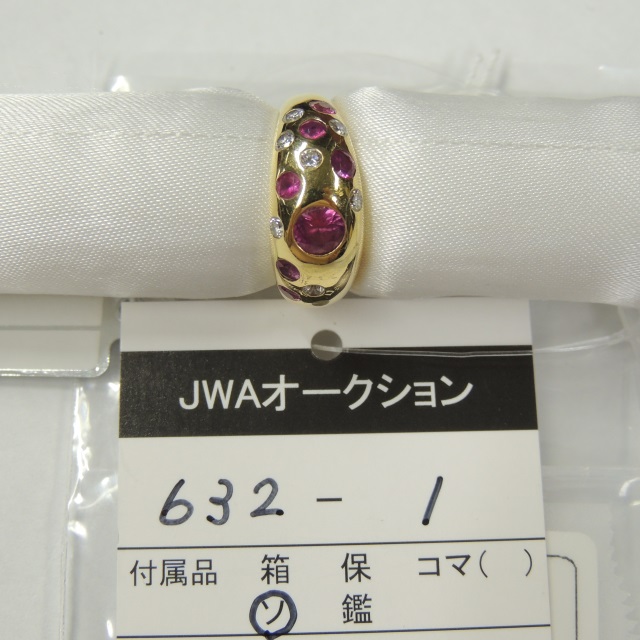 リング 色石 ダイヤ K18/Pt900 15.50g 石目:19.65 D0.23 0.34