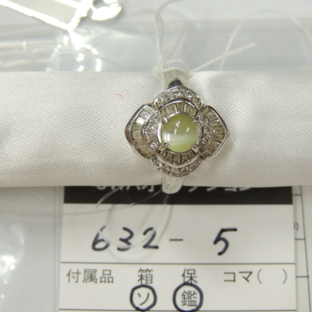 リング クリソベリルキャッツアイ ダイヤ Pt900 8.20g 鑑 石目:1.23 D0.55