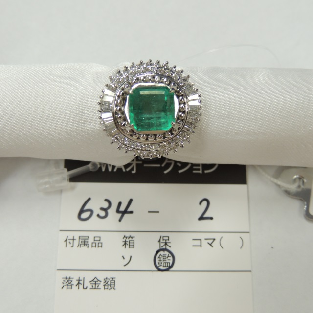 リング エメラルド ダイヤ Pt900 11.90g 鑑 石目:E2.11 D0.79