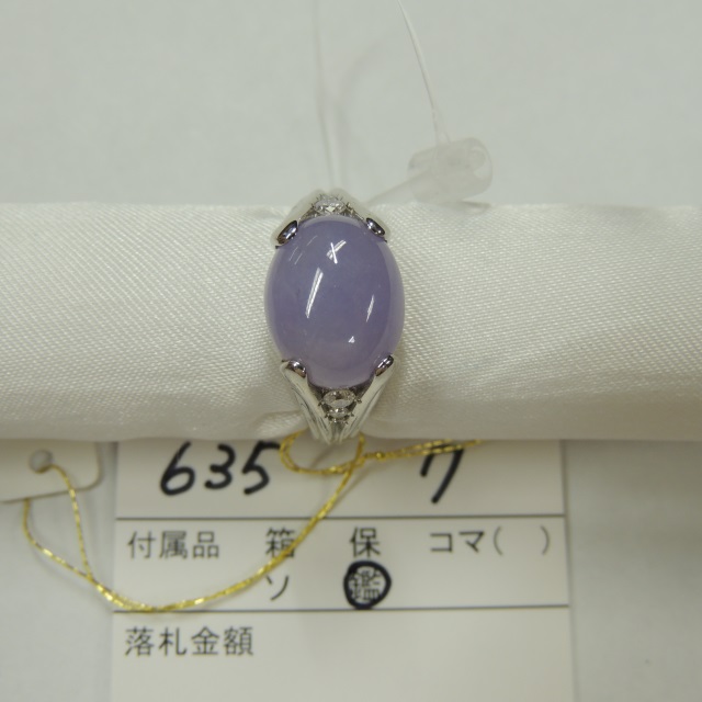リング ラベンダーヒスイ Pt900 11.40g 鑑 石目:8.71 D0.16