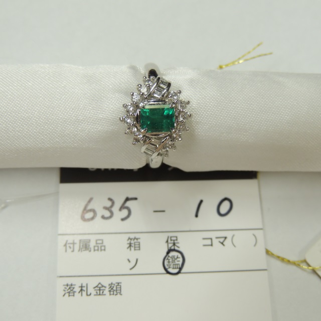 リング エメラルド ダイヤ Pt900 6.40g 鑑 石目:E0.64 D0.5