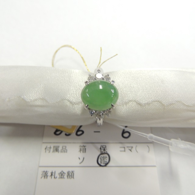 リング ヒスイ ダイヤ Pt900 8.10g 鑑 石目:4.07 D0.31