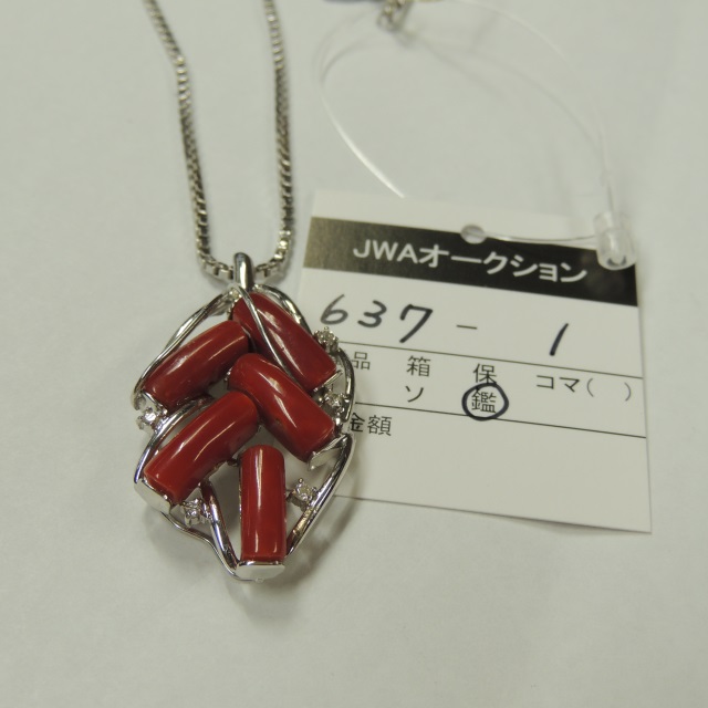 ペン・ネック サンゴ ダイヤ K18WG 14.30g 鑑 石目:D0.1