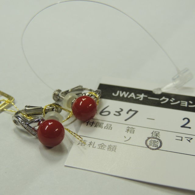 イヤリング サンゴ ダイヤ 総重量 K14WG 3.90g 鑑 石目:0.02 0.02