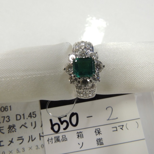 リング エメラルド ダイヤ Pt900 9.00g 中ソ 石目:E0.73 D1.45
