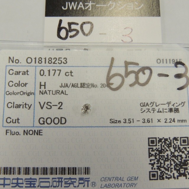 ルース ダイヤ H/VS2/GOOD/NONE 中ソ 石目:0.177