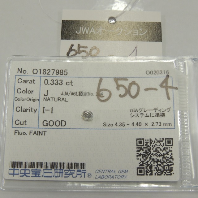 ルース ダイヤ J/I1/GOOD/FAINT 中ソ 石目:0.333