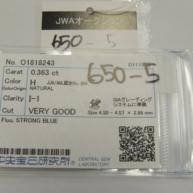ルース ダイヤ H/I1/VG/SB 中ソ 石目:0.363
