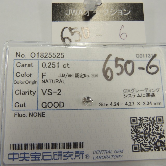 ルース ダイヤ F/VS2/GOOD/NONE 中ソ 石目:0.251