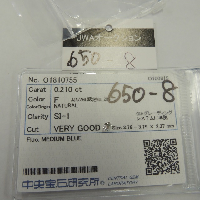 ルース ダイヤ F/SI1/VG/MB 中ソ 石目:0.210