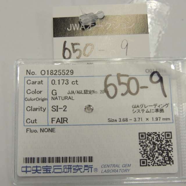 ルース ダイヤ G/SI2/FAIR/NONE 中ソ 石目:0.173