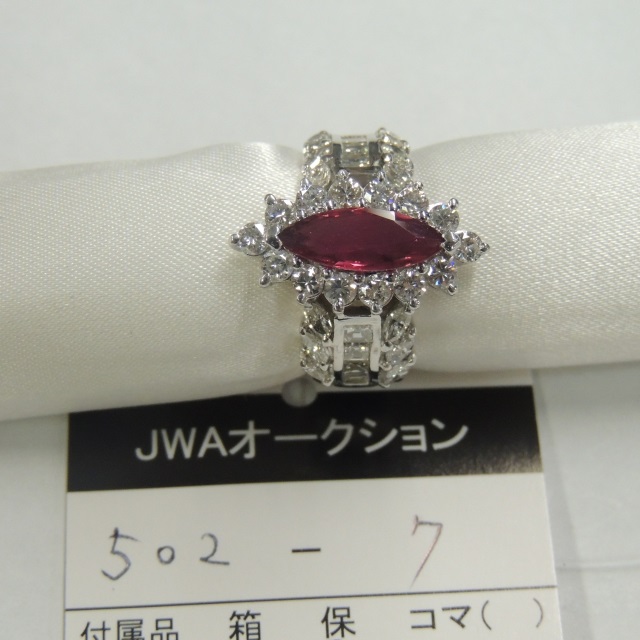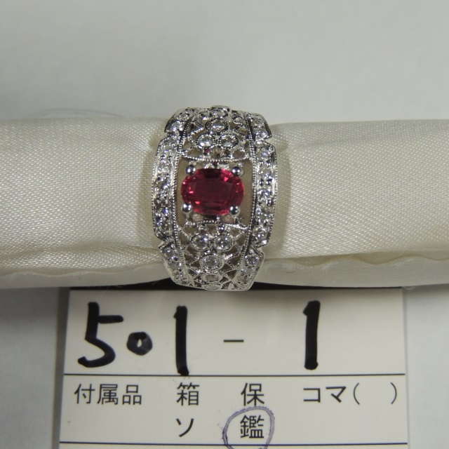 リング ルビー ダイヤ Pt900 9.30g 鑑 石目:R0.98 D0.53