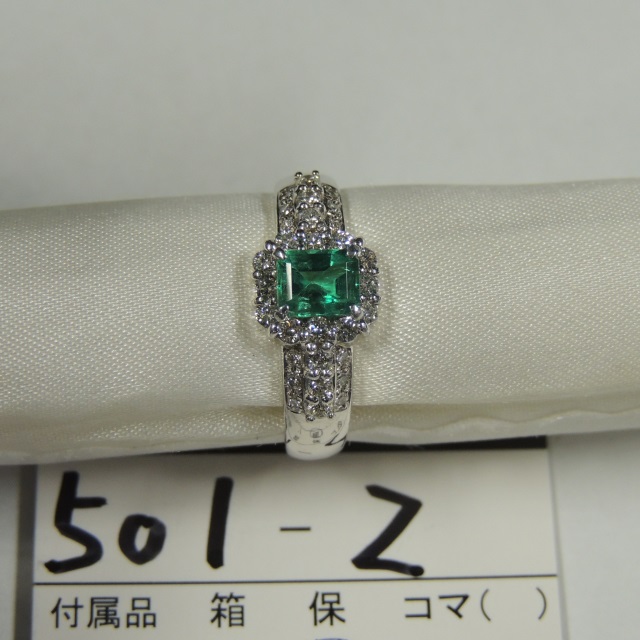 リング エメラルド ダイヤ Pt900 5.60g 鑑 石目:E0.57 D0.45