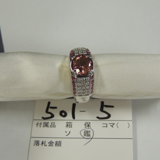 リング トルマリン ダイヤ ピンクサファイア K18WG 11.20g 鑑 石目:PT2.10 PS0.45 D0.35
