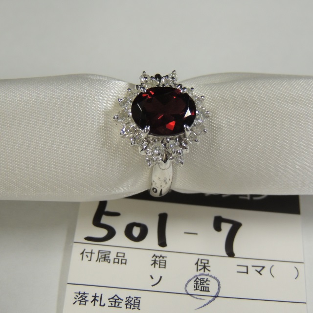 リング ガーネット ダイヤ Pt900 6.80g 鑑 石目:0.55