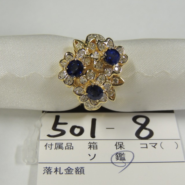 リング サファイヤ ダイヤ K18YG 9.80g 鑑 石目:S1.41 D0.60