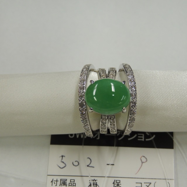 リング ヒスイ ダイヤ Pt900 16.00g 中ソ 石目:J6.915 D0.94