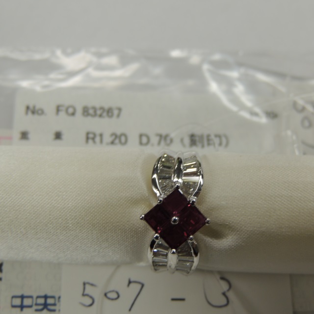 リング ルビー ダイヤ フラクチャー透明物質 Pt900 8.90g GRJソ 石目:2.760 1.324