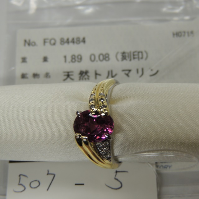 リング ピンクトルマリン ダイヤ Pt900/K18 8.90g 中ソ 石目:T1.89 D0.08