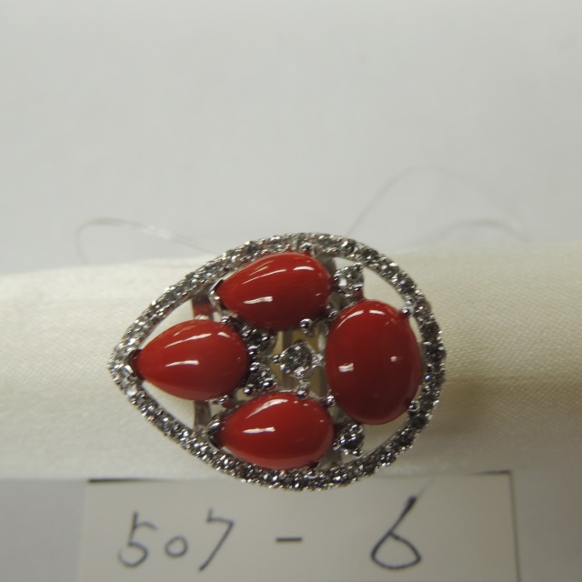 リング サンゴ ダイヤ K18WG 7.50g 石目:D1.08