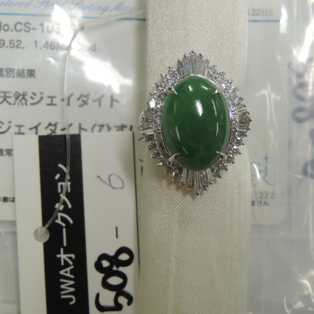 リング ヒスイ ダイヤ Pt900 15.90g GRJソ 石目:9.52 D1.46