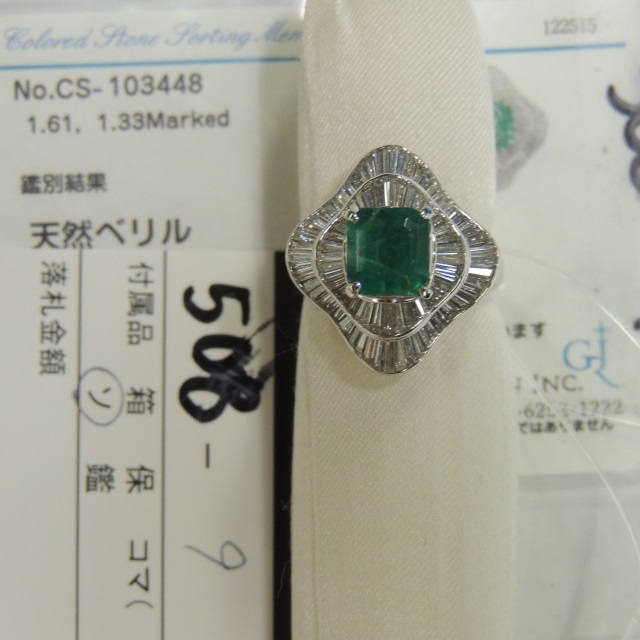 リング エメラルド ダイヤ Pt900 12.70g GRJソ 石目:1.61 D1.33