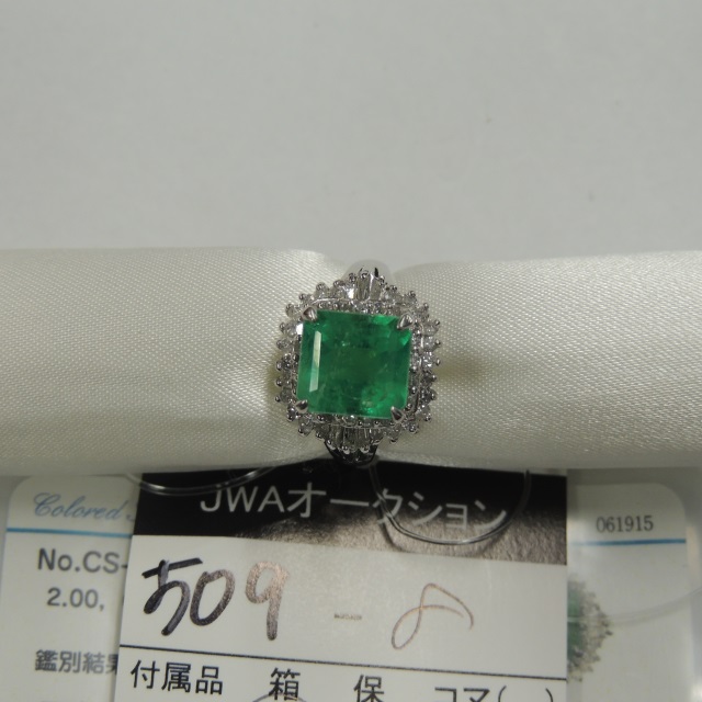 リング エメラルド ダイヤ Pt900 7.40g GRJソ 石目:2.000 0.500