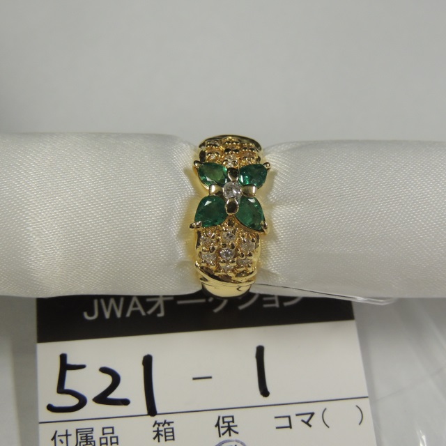リング エメラルド ダイヤ K18YG 4.90g 鑑 石目:E0.82 D0.33